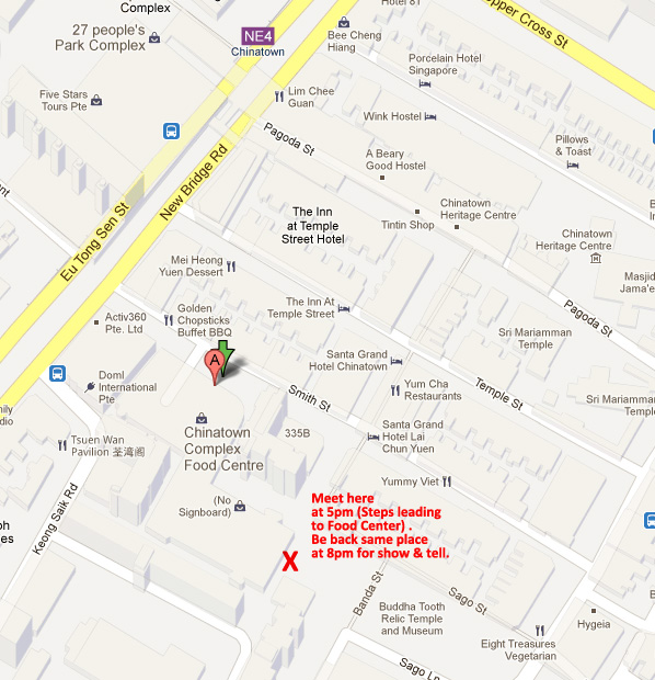 Meeting Place: Steps leading to Chinatown Food Center on the South Side facing Buddha Tooth Relic Temple.